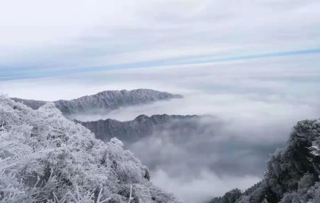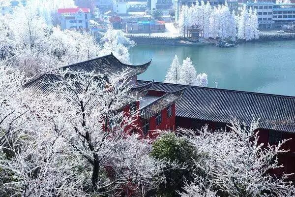 「雪后初晴」九宫山常会出现雾凇奇观。漫山遍野玉树银花,树枝上通体晶莹剔透,形成江南罕见的冰雪风光。