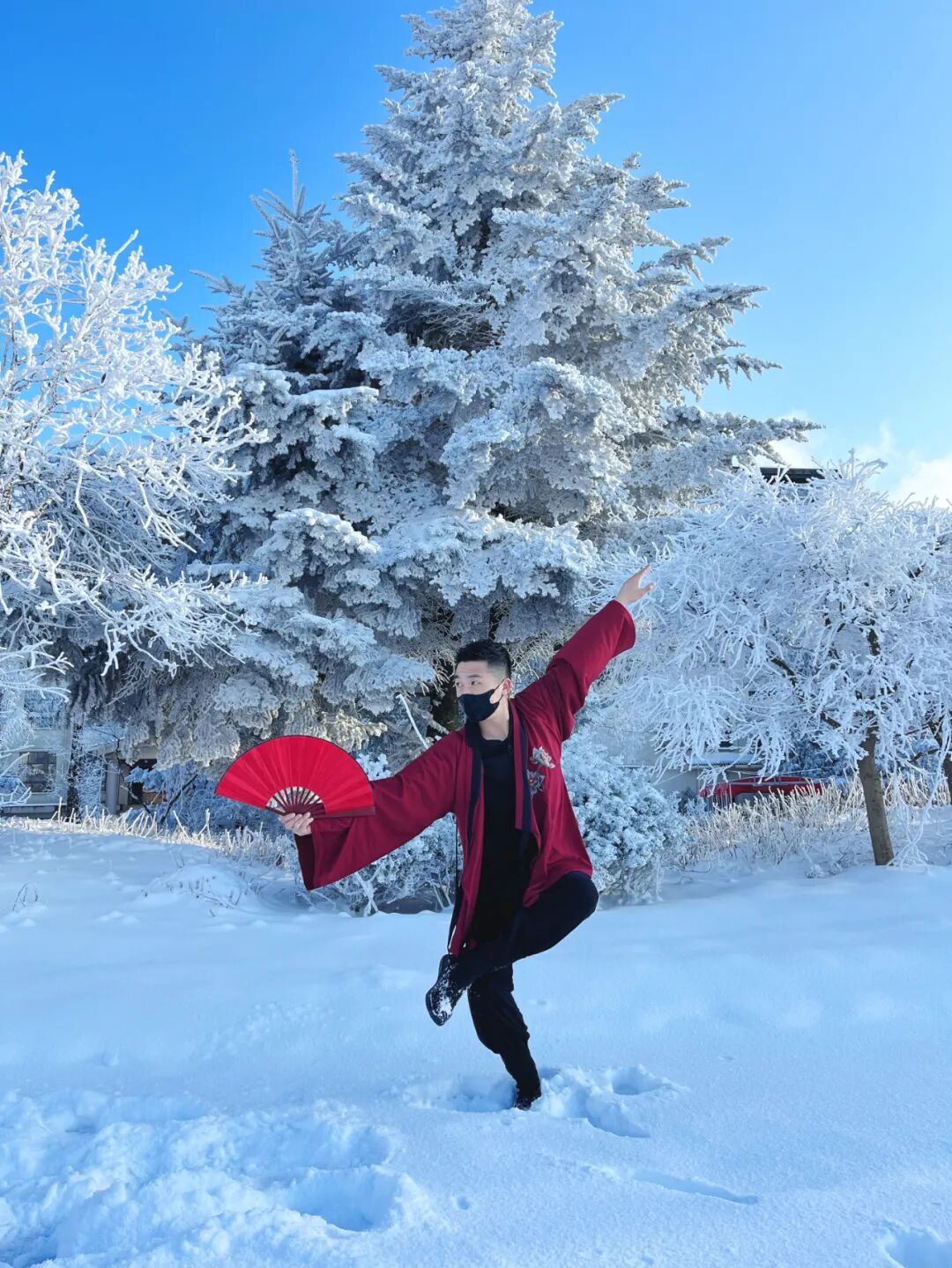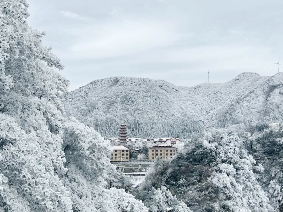 「冬日的九宫山」是一场视觉的盛宴。当雪花纷纷扬扬洒下,群山披上银装,天地间一片洁白。