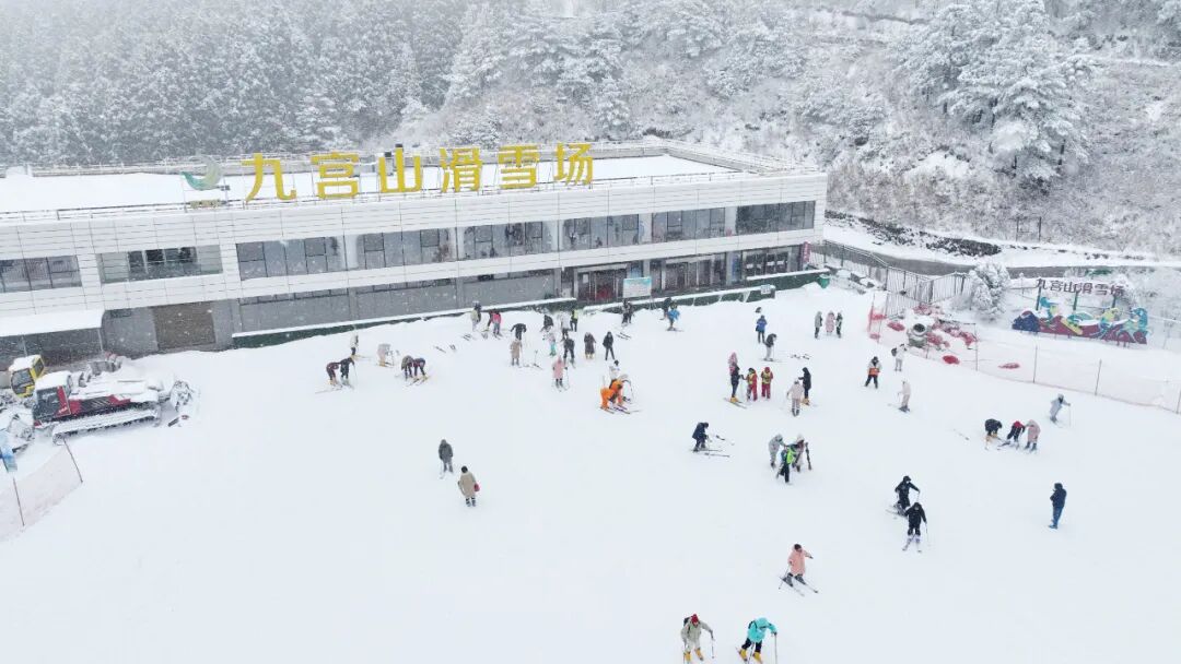 「九宫山滑雪场」位于海拔1559米的高山上,垂直落差100米,采用人造雪和天然雪相结合,适合开展大众滑雪和竞技滑雪。