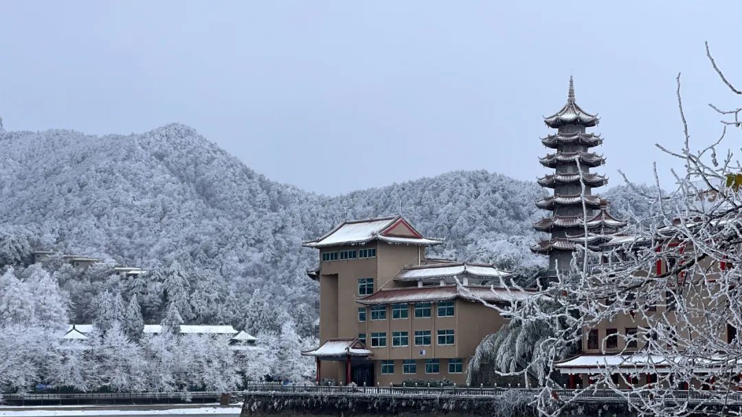 「冬日的九宫山」是一场视觉的盛宴。当雪花纷纷扬扬洒下,群山披上银装,天地间一片洁白。