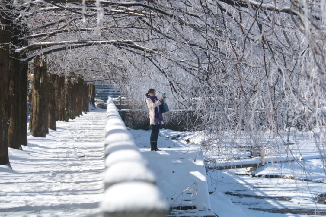 雾凇比白雪更奇,比雪霜更美,雾凇有纹理,冰清玉洁,「千姿百态」,洁白高雅。
